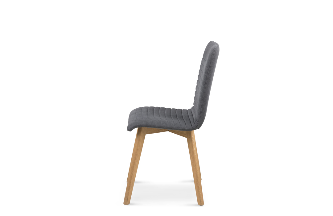 Η καρέκλα τραπεζαρίας Arosa αποπνέει κομψότητα και διαχρονικότητα, συνδυάζοντας την άνεση με τη φυσική αισθητική του ξύλου. Το ανθρακί ύφασμα προσδίδει μοντέρνα εμφάνιση, ενώ οι κομψές οριζόντιες ραφές αναδεικνύουν τον προσεγμένο σχεδιασμό της. Η βάση από μασίφ δρυς εξασφαλίζει στιβαρότητα, σταθερότητα και μεγάλη αντοχή στον χρόνο. Ταιριάζει αρμονικά τόσο σε σύγχρονα όσο και σε πιο κλασικά περιβάλλοντα.